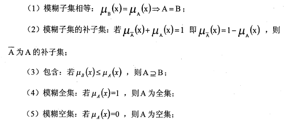 模糊集合的運(yùn)算滿足的基本規(guī)律有:交換律,結(jié)合律,分配律,`傳遞律,冪等律,摩根律,復(fù)原律。由于模糊集合及其補(bǔ)集均沒有明確的外延,所以模糊集合運(yùn)算不滿足互補(bǔ)律。