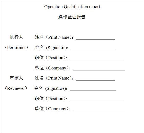 本次操作驗證(Operation Qualification)文件填寫目的是為了規(guī)范